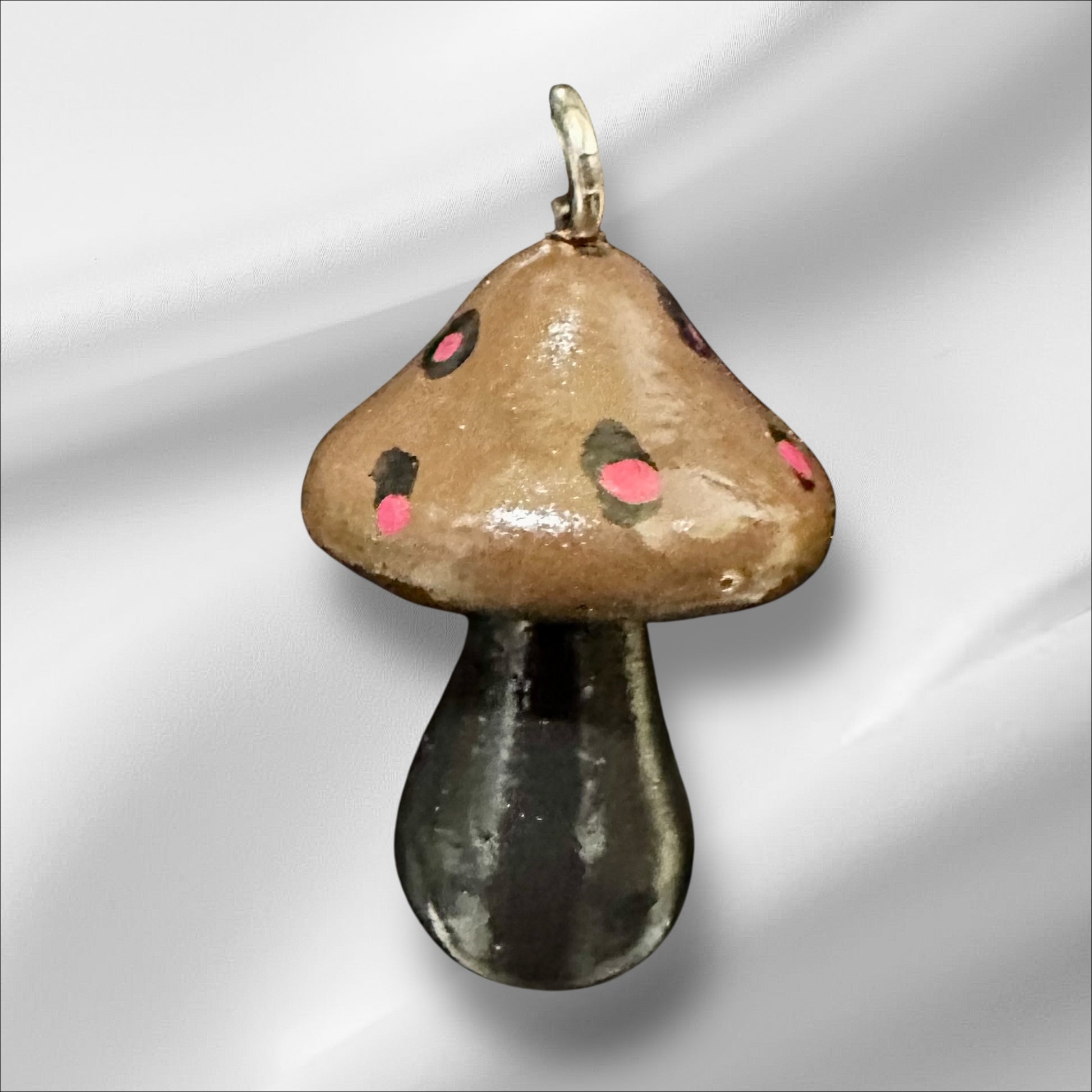 This wooden mushroom pendant is unique with a brown cap, espresso colored stem, with red and espresso. This eye-catching, one-inch pendant is hand-painted. Making your pendant one of a kind!